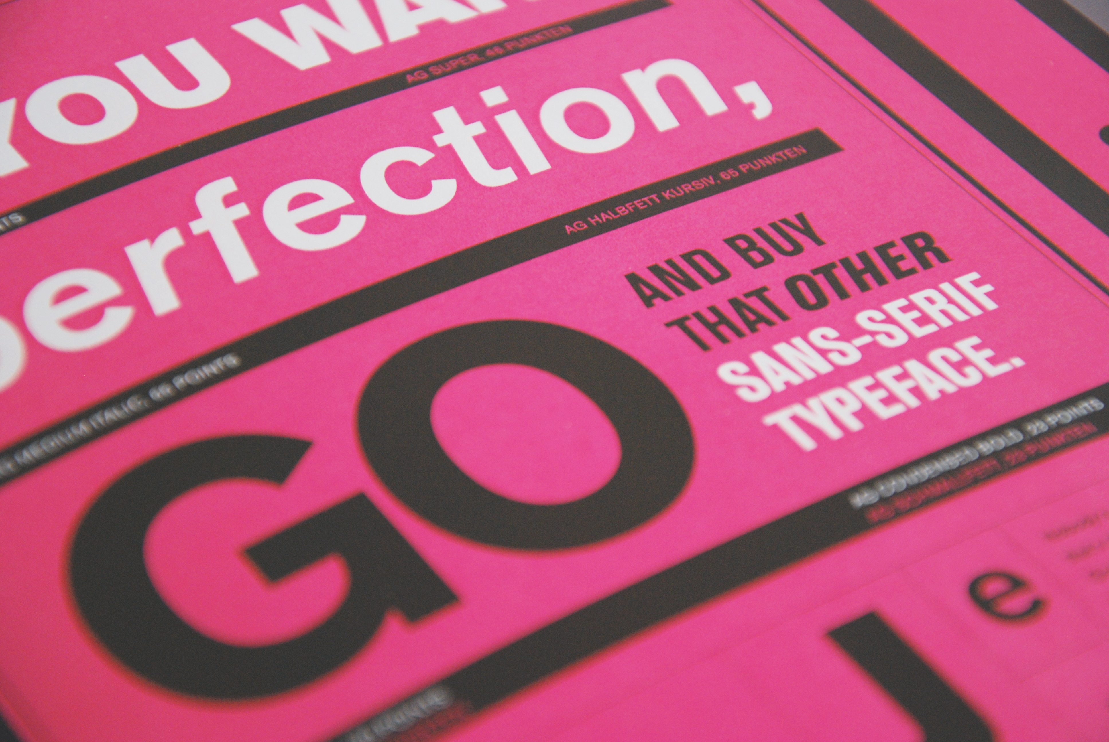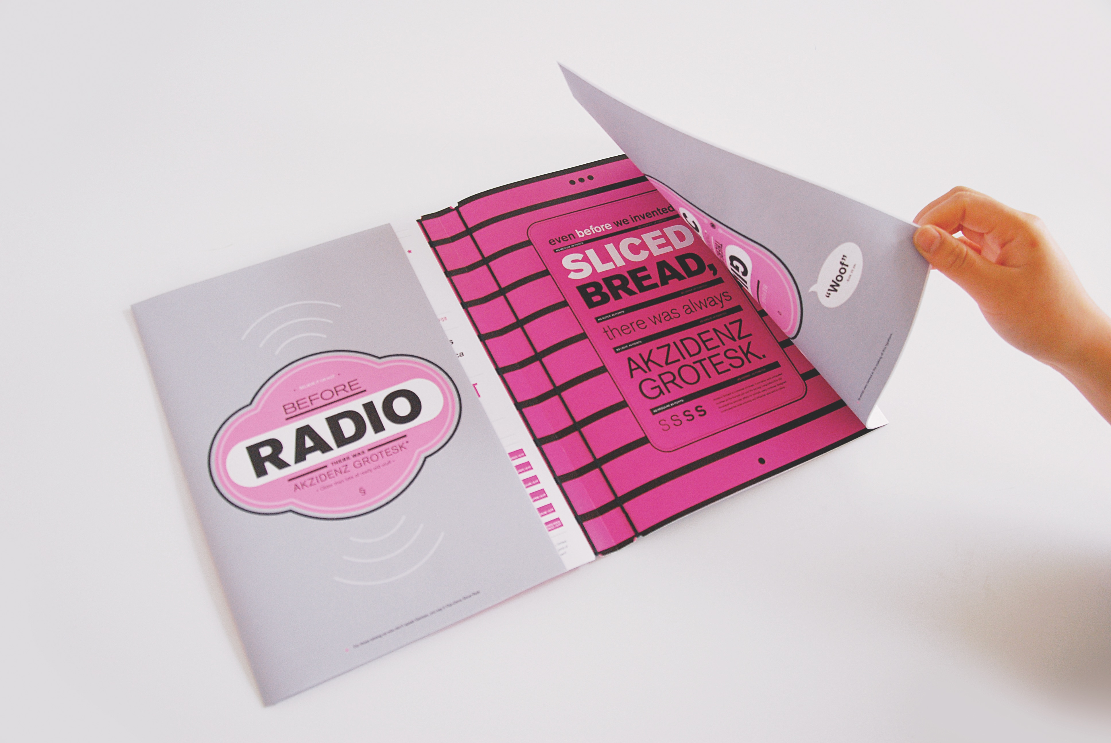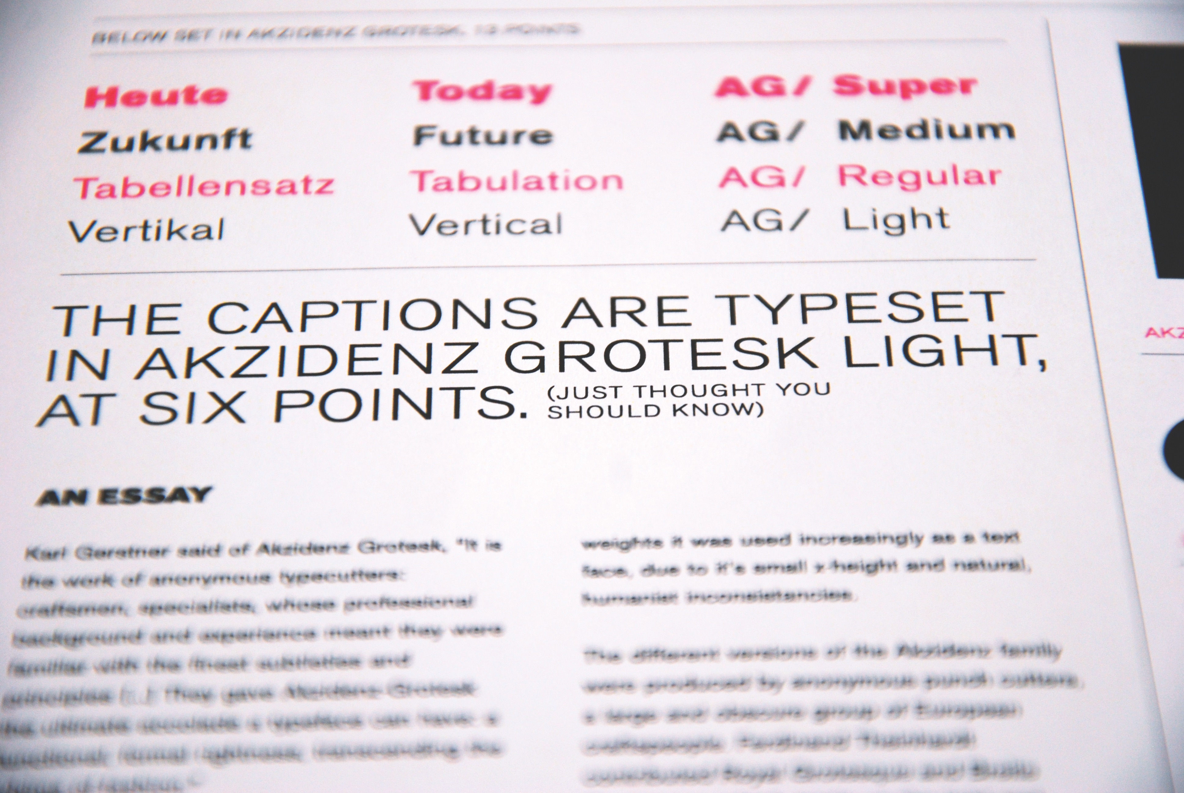 This brief was to design a specimen broadsheet and booklet for a nomimated typeface. Akzidenz Grotesk has a fascinating history, which is explored through copy and composition in the work.